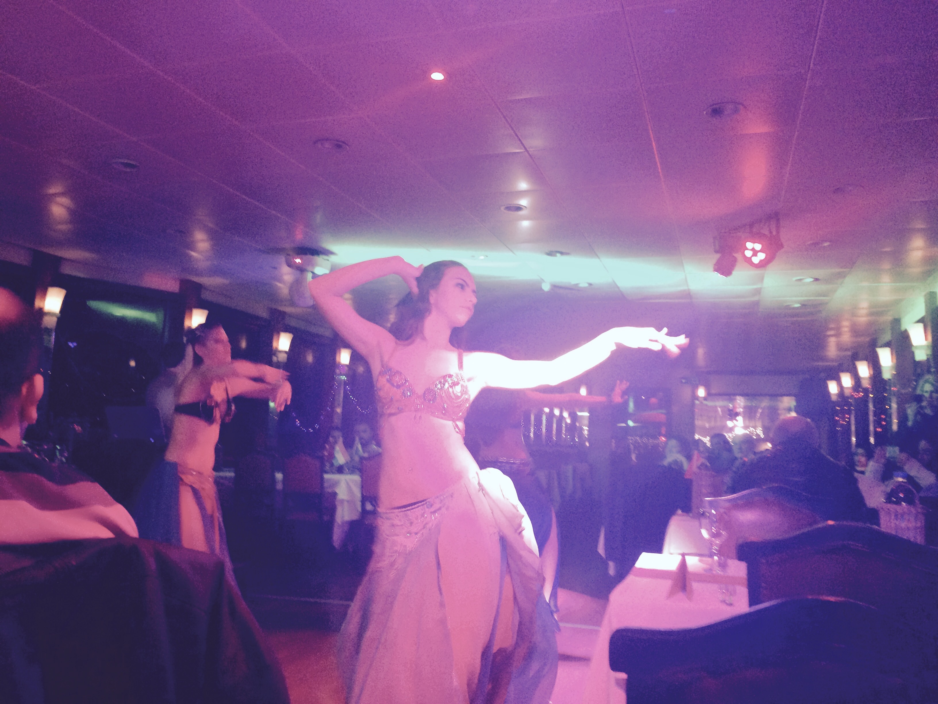 The dinner cruise began to dock, and a 70ish disco Turkish song played in the background. The host was encouraging everyone to come to the dance floor for a final dance. I was back in my seat, pleased for how the night turned out, but still not wanting to dance alone. Then a Turkish 20 something girl pulled me up to dance with her and her family, her Turkish mother and little 7 year old sister. As we danced, I tried to speak to them, but I realized they didn’t speak English. We were communicating through dance, and they approved of me. Further into the song, two teenage girls from Dubai pulled me aside and asked “Where did you learn to dance like that?” and “Can you teach us?” I continued to display some of my bellydancing moves with them.