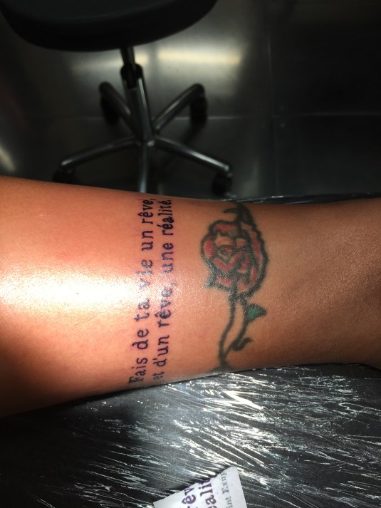 Or perhaps I could get a silly fox or angel wings . But nothing felt right . And then I stumbled upon this quote in French by the author of the Little Prince Antoine de saint-exupéry : Fais de ta vie un rêve, et d’un rêve, une réalité.