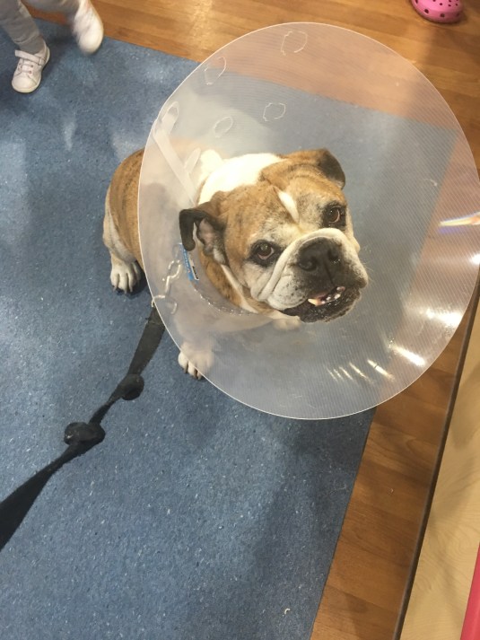Our 9 year old English Bulldog has lived everywhere from Ohio Amish country, Hawaii , LA, Santa Barbara, and back to his homeland England. Just looking at him makes me smile. Who cannot love bully’s wrinkles? He is a living teddy bear.