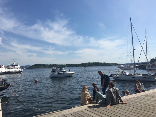 In less than 24 hours, Oslo has captivated my heart. I somehow land on a surreal weekend, where the weather is 80 degrees, the sun is out, and people are joyous. I am travelling and oddly have no plans, except what I observed from watching a Travel With Rick Steves Norway episode online. As soon as I arrived at my hotel, I dropped my bags and tried to head straight to a Fjord cruise. Although it was sold out, I decide to meander towards this modern art museum: Astrup Fearnley Museet. Each corner I turned, I observed locals and tourists embracing the sun. They were eating in cafes outside, or sitting on built in benches looking out onto the water, grabbing ice cream cones, or bicycling around the city.