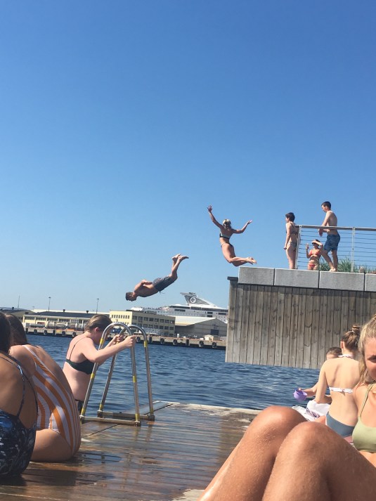 Even further behind the museum was an impromptu diving board. Teenagers showed off their cliff diving skills with somersaults into the sea. Crowds gathered and watched as they overcame their fears and exuded their bravery. As I observed all this, tears spontaneously came to my eyes. This is beauty. What we were all participating in did not cost any money. For a brief moment, everyone’s cares and stresses were diminished. We were embracing the sun, gathering by the water, surrounded by exterior art exhibits, and observing people show off their talents. I forgot how much I missed this, how much I missed summer. It was nostalgia, in a land I have never been to. It was this universal nostalgia that we all have, almost as Jung would say this universal unconscious we all briefly tapped into remembering.
