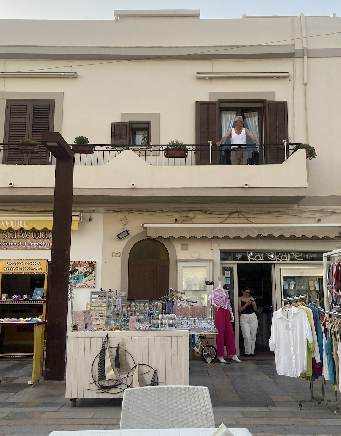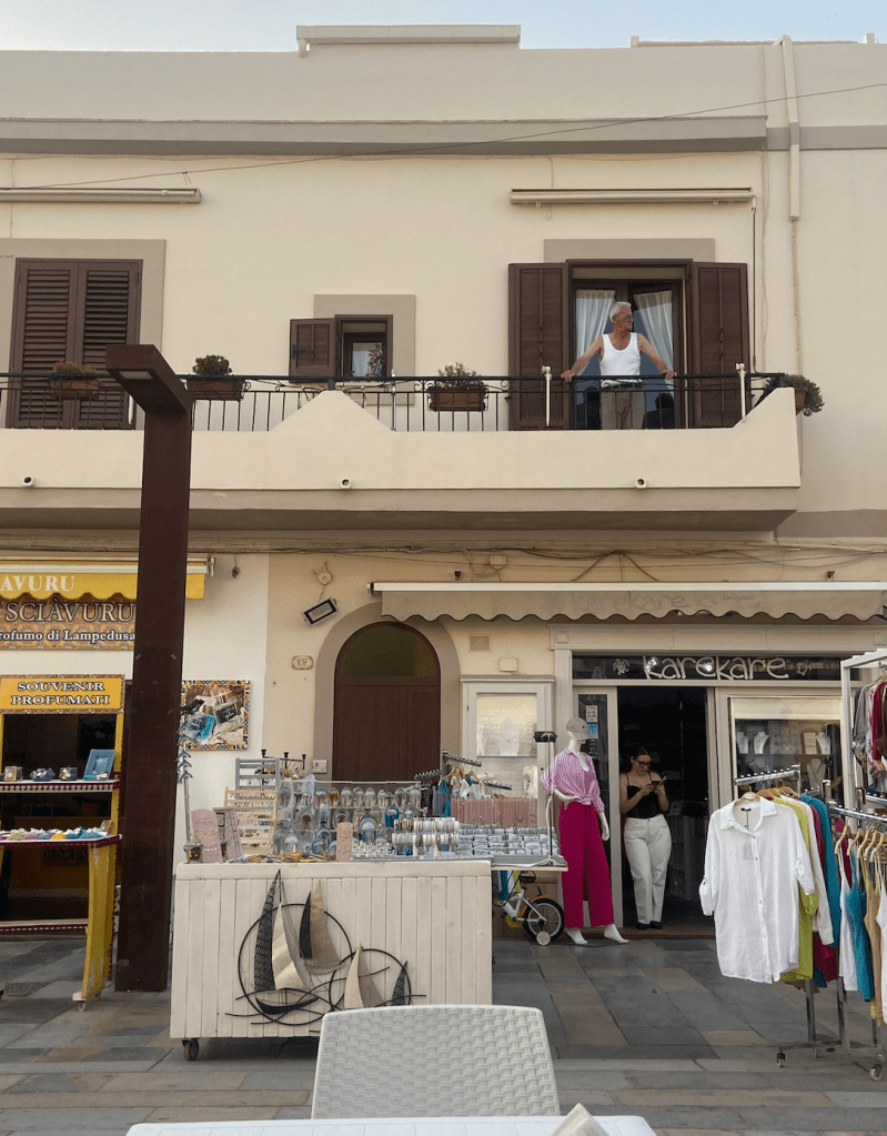 This is what I felt when I walked the streets of Lampedusa. It was a hectic busy 24 hours flying from Malaga to Naples, going to Pompeii, and flying to Lampedusa. The day was filled with a bit of anxiety, travel stress, and tons of stress. I think my body was on guard and tense due to my strict timelines, the heat, and the awareness of the fact that I could not get too comfortable because I would have to move to the next location. I had not arrived yet. But now walking the quiet “main street” of town, I could relax. I didn’t even need to go to the beach yet to feel the chill vibes.