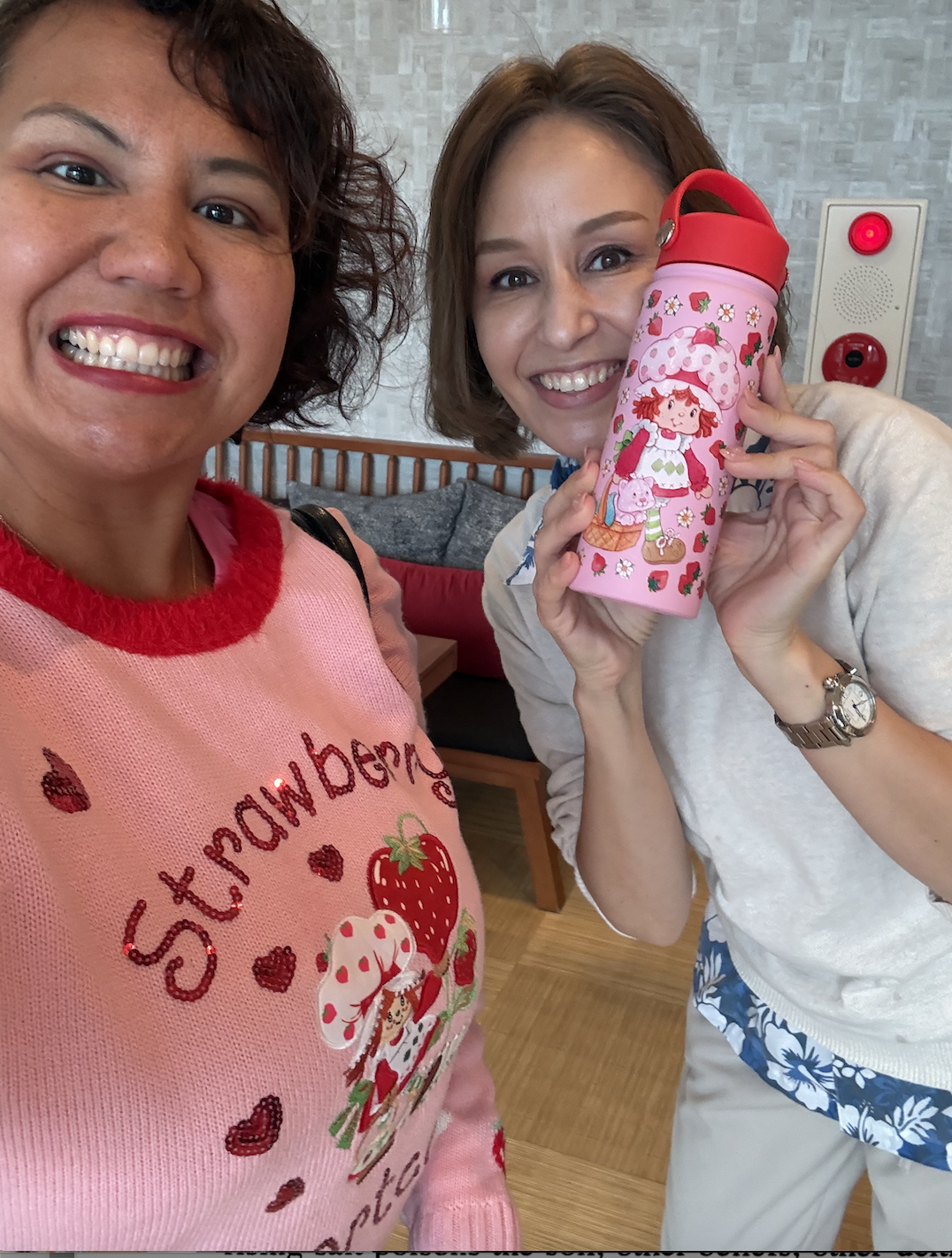 What was interesting is I had just recently bought this sweater prior to coming to Japan.  She showed me her water bottle, also Strawberry Shortcake, and an I phone case she made with the same image.  She admitted as she got older, and her children aged, this was her time to embrace what she loved in her youth.  It was interesting, because earlier in the week, I just purchased a Hello Kitty keychain and was debating to go into town to get a Hello Kitty hat and a Monchhichi purse, both paraphernalia for us 80s kids. But now I had validation, it was totally ok to get this.  A kindred spirit was doing the same thing on the other side of the world.  She deeply connected with Strawberry Shortcake, as it was not easily found in stores in Japan and was special to her experience.  She had to search this out.  Although Hello Kitty was universal, Monchhichi wasn’t. I was doing the same thing in Okinawa.