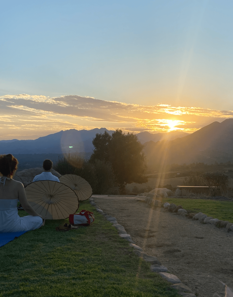 As time passed, I noticed my hips getting heavy, tension arising from my first and second chakra.  Although I have led an outdoor sound bath, I have never been in one.  And as I laid on the grass on top of the Ojai hill, I felt as if the Earth was taking the sorrows and traumas from my body that I had heard throughout the week.  My body had served as an instrument during the week, and now it was being cleaned and tuned by the Earth. My mind finally relaxed, and I momentarily fell asleep.  I awoke, prior to the end of the sound bath, I felt restored.  The week’s heaviness had been lifted, and I could appreciate the sunset that appeared before me.